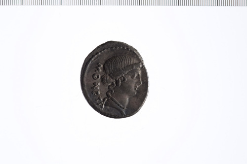 Testa di Giunone Moneta a d. Bordo perlinato.
