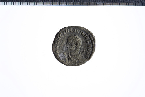Busto laureato, corazzato di Licinio a s. con lancia e scudo; contorno perlinato.