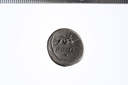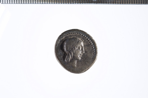 Testa laureata di Apollo a d. con i capelli fermati da un nastro. Bordo perlinato.
