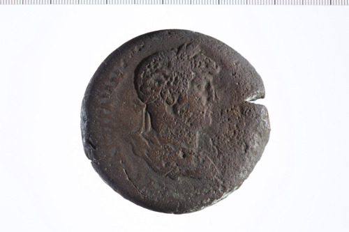 Busto laureato di Adriano a d., paludato, corazzato, di tre quarti, di spalle.