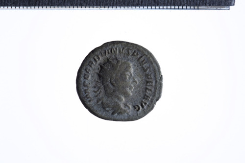 Busto radiato di Gordiano III a d. con corazza e paludamentum, di tre quarti di spalle; contorno perlinato.