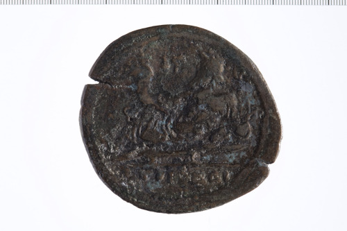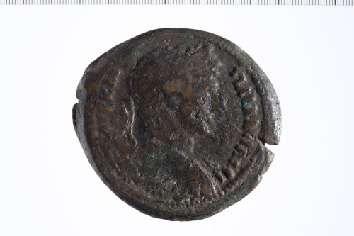 Busto laureato di Adriano a d., paludato, corazzato, di tre quarti, di spalle.