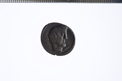 Testa barbata di Re Tazio a d.; davanti, un ramo di palma; c.p.