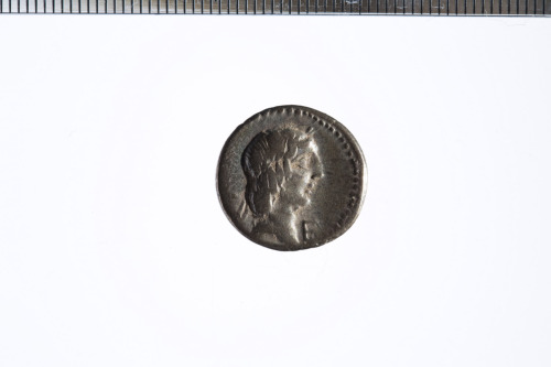 Testa laureata di Apollo a d. con i capelli fermati da un nastro. Bordo perlinato.