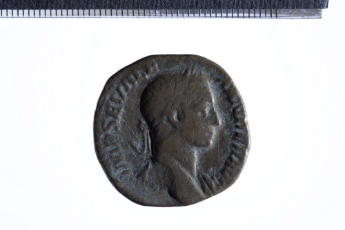 Busto laureato di Alessandro Severo a d., con paludamentum sulla spalla s.; contorno perlinato.