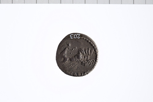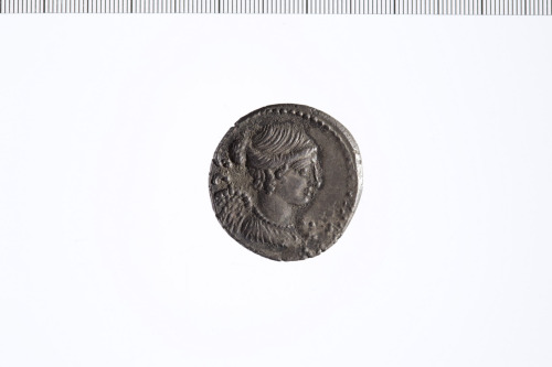 Busto drappeggiato di Vittoria a d. Cerchio perlinato.