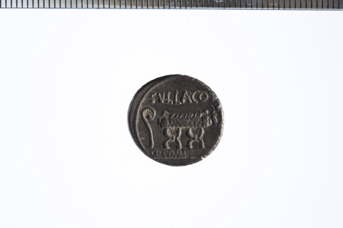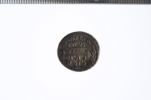 Sedia curule; a s. freccia, a d. ramo d'alloro. Bordo perlinato.