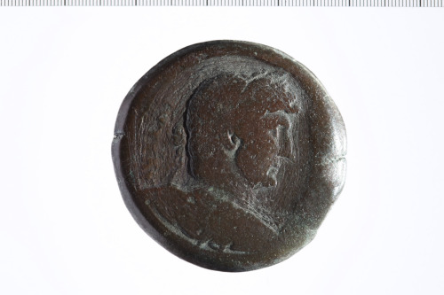 Busto laureato di Adriano a d., paludato, di tre quarti, di spalle.