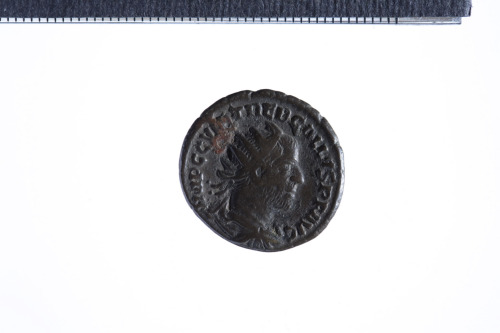 Busto radiato e drappeggiato di Treboniano Gallo a d.; contorno perlinato.
