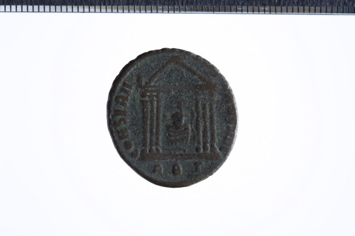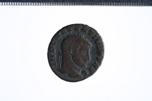 Busto laureato di Massenzio a d.; contorno perlinato.