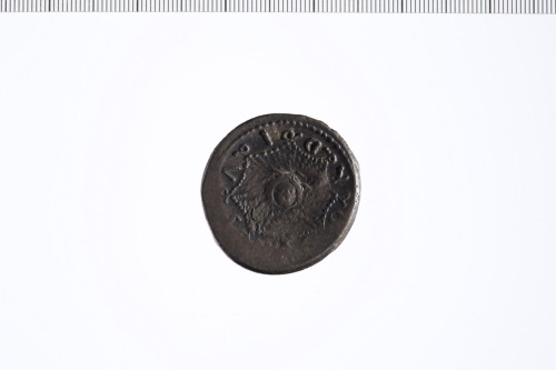 Una civetta sopra un elmo corinzio. Bordo perlinato.