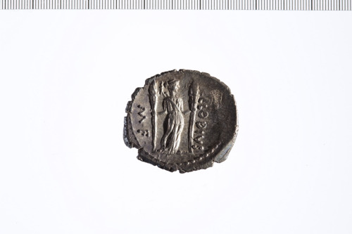 Testa laureata di Apollo a d.; a s. lyra. Bordo perlinato.