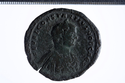 Busto laureato e drappeggiato di Costanzo a d.; contorno perlinato.