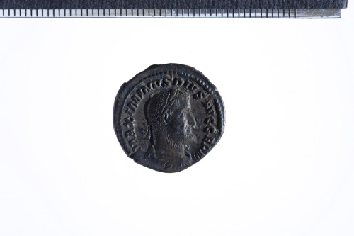 Busto laureato di Massimino I con corazza e paludamentum; contorno perlinato.