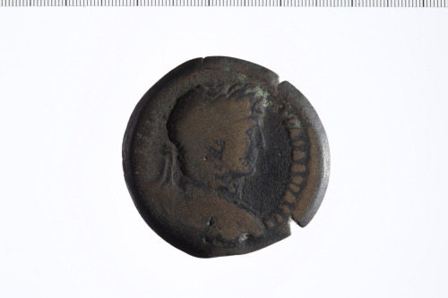 Busto laureato di Adriano a d., paludato, corazzato, di tre quarti, di spalle.
