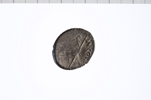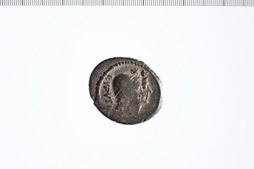 Teste dei Dioscuri a d. con i pilei sormontati da due stelle e decorati con due nastri. Bordo perlinato.