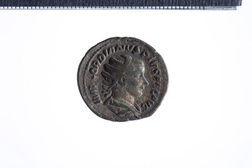 Busto radiato di Gordiano III a d. con corazza e paludamentum, di tre quarti di spalle; contorno perlinato.
