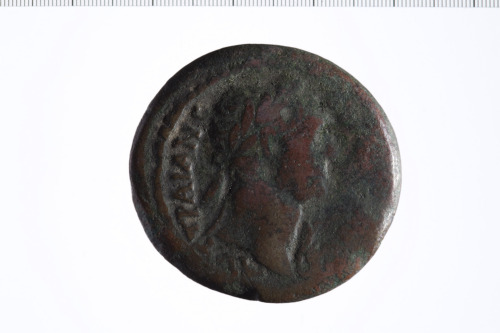Testa laureata di Traiano a d.