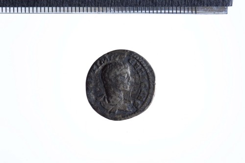 Busto a testa nuda di Geta a d., con paludamentum e corazza (?), di tre quarti di spalle; contorno perlinato.