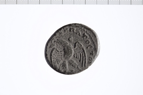 Testa di Elagabalo a d. laureato e con paludamentum.