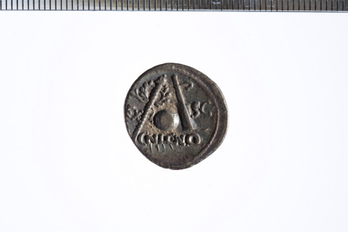 Busto drappeggiato del Genius Populi Romani a d, con i capelli legati da una benda e uno scettro dietro le spalle; c.p.