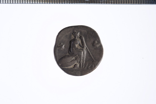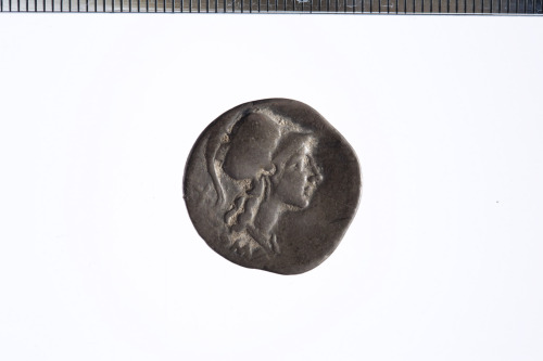 Testa di Roma a d. con elmo corinzio, dietro simbolo di valore X