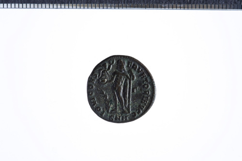Busto laureato con mantello imperiale di Costantino a s., con globo e mappa; contorno perlinato.