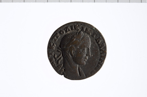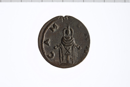 Busto laureato di Gallieno a d., paludato, corazzato, di tre quarti, di spalle; contorno perlinato.