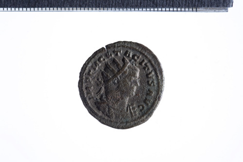 Busto radiato e corazzato di Tacito a d.; contorno perlinato.
