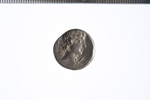 Testa laureata di Apollo a d.; sotto il mento un simbolo o lettera di controllo non meglio identificabile; c.p.