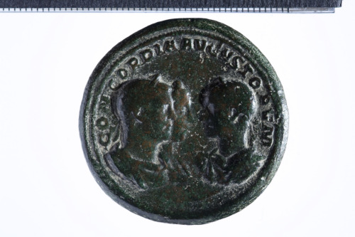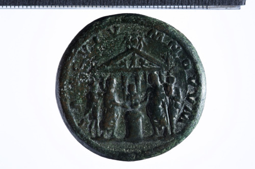 Busti accollati di di Filippo I, e Otacilia a d. (busto di Filippo I laureato, con corazza e paludamentum, di tre quarti in avanti; busto di Otacilia, diademato e drappeggiato); di fronte, busto laureato di Filippo II a s., con corazza e paludamentum, di tre quarti in avanti; contorno perlinato.