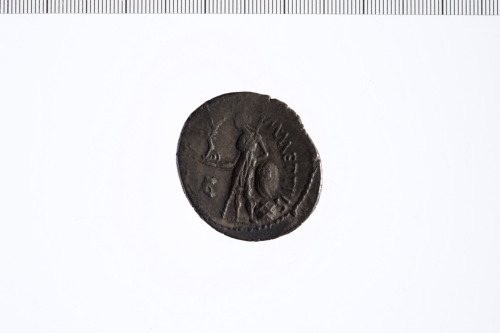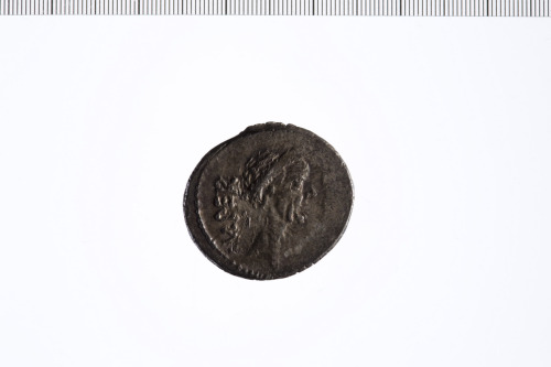 Testa laureata di Giulio Cesare a d. Bordo perlinato.