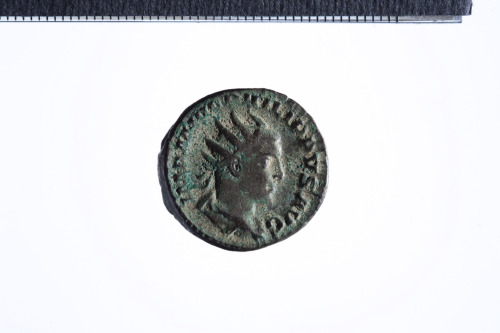 Busto radiato di Filippo II a d. con corazza e paludamentum, di tre quarti di spalle; contorno perlinato.