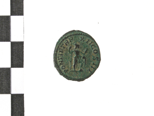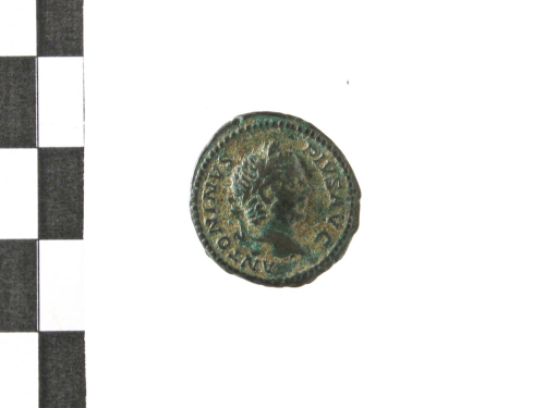 Testa laureata di Antonino III a d.; contorno perlinato.