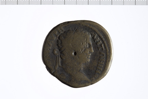 Testa laureata di Caracalla a d.