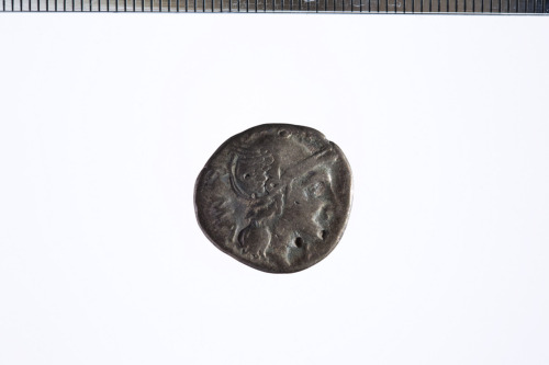 Testa elmata di Roma a d., davanti simbolo di valore X, c.p.
