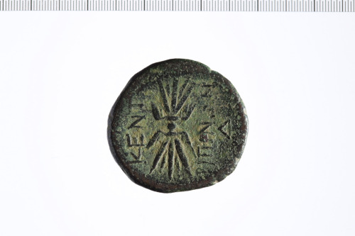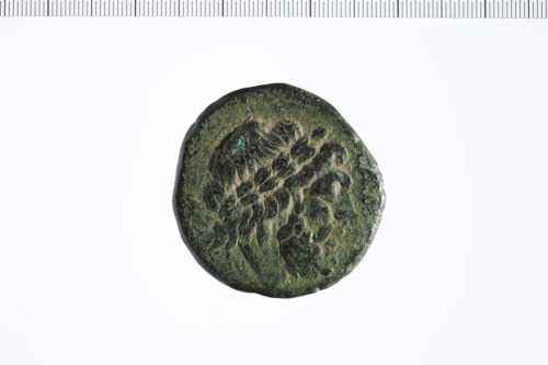 Testa laureata di Zeus barbato a d.