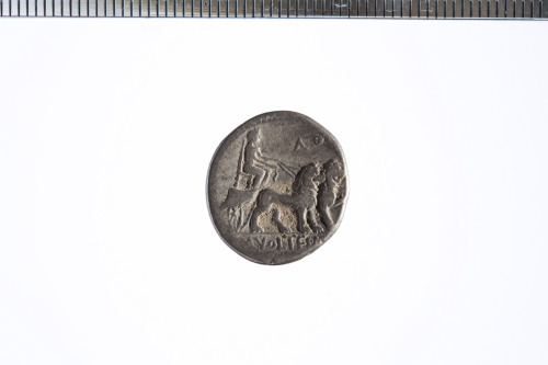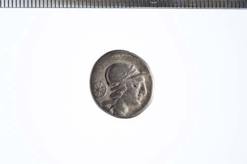 Busto elmato e laureato a d.; dietro, un ruota raggiata; c.p.