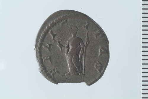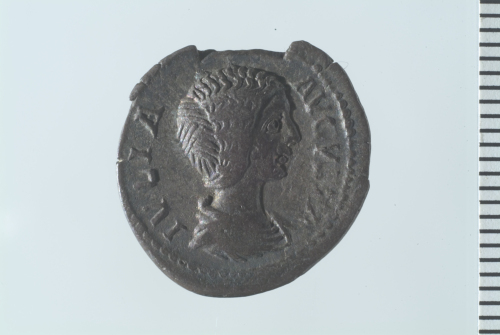 Busto drappeggiato di Giulia Domna a d.; contorno perlinato.