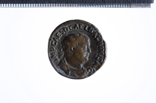 Busto radiato di Balbino a d. con corazza (?) e paludamentum, di tre quarti in avanti; contorno perlinato.