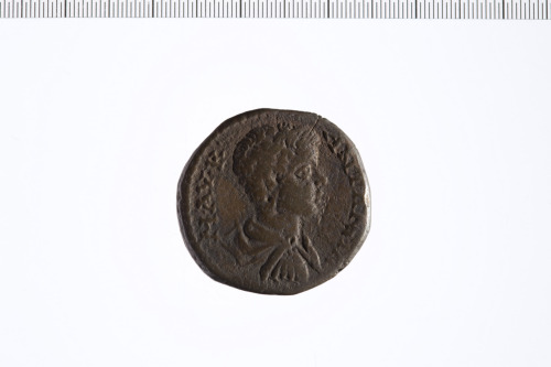 Busto di Caracalla giovane a d. con testa nuda e paludamentum.