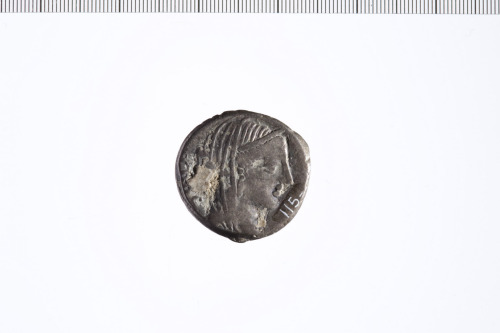 Testa di Giunone a d. con diadema, velo e con scettro sulla spalla. Contorno perlinato.