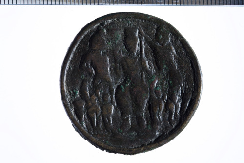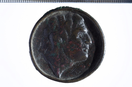 Testa di Alessandro Magno con lunghi capelli a ciocche e diadema, lo sguardo è rivolto in alto