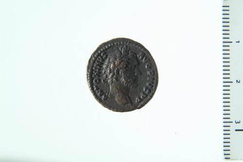 Testa laureata di Antonino Pio a d.; contorno perlinato.