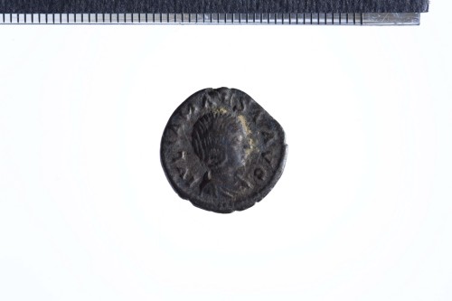 Busto drappeggiato di Giulia Mesa a d., di tre quarti in avanti; contorno perlinato.