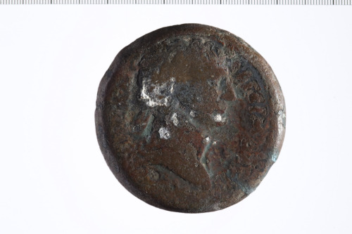 Testa laureata di Traiano a d.