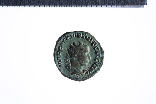 Busto radiato e drappeggiato di Treboniano Gallo a d.; contorno perlinato.