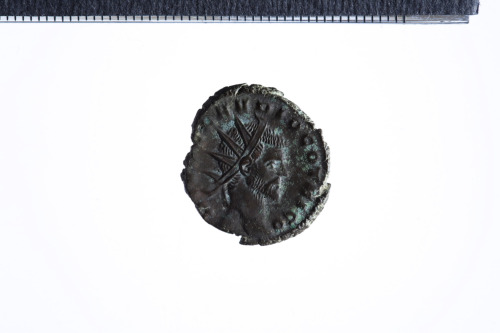 Busto radiato di Claudio II a d.; contorno perlinato.