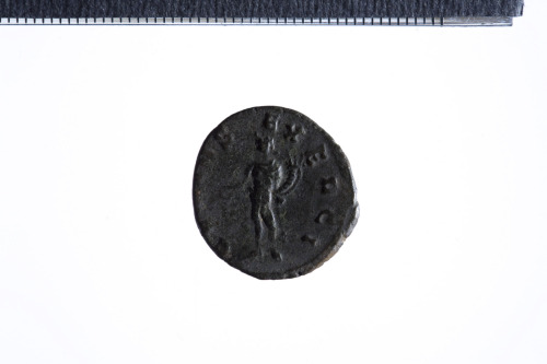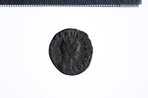 Busto radiato e orazzato di Claudio II a d.; contorno perlinato.