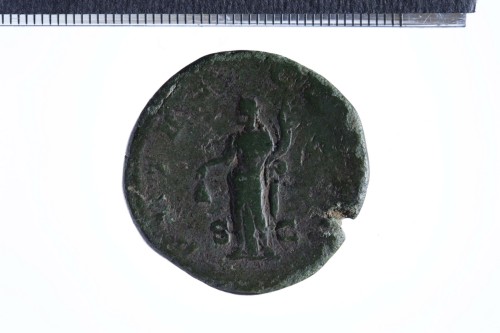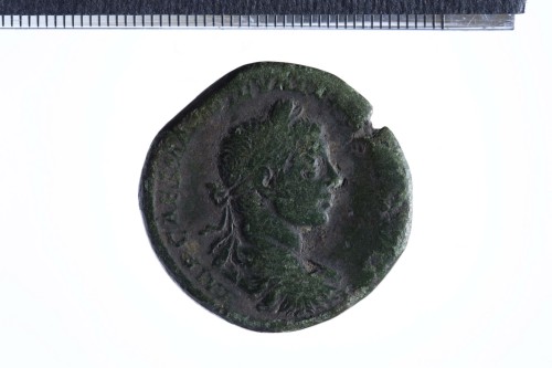 Busto laureato di Elagabalo a d., con corazza e paludamentum, di tre quarti in avanti; contorno perlinato.